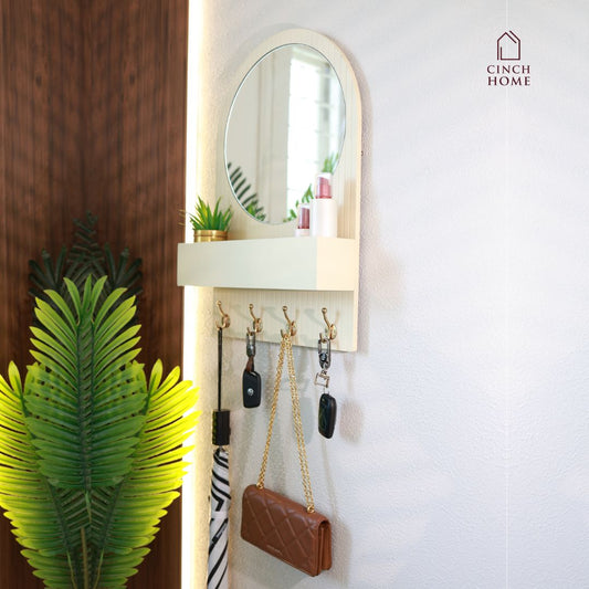 Entryway Organiser with Round Mirror with Dual Hooks & Shelf