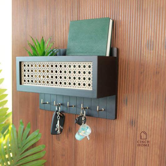 Rattan Key Holder & Wall Shelf