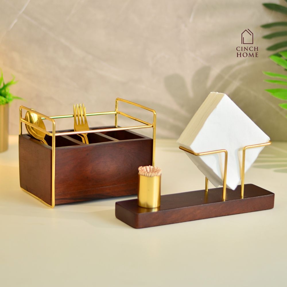 Quality Craftsmanship:Â Both the Cutlery Holder and Tissue Holder with Toothpick Stand are crafted from high-quality materials, ensuring longevity and reliability for everyday use.